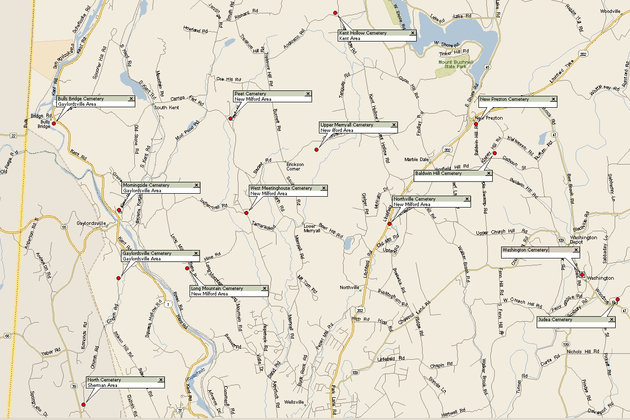 Cemetery Locator Map for the Town of New Milford, Connecticut (the northern part of New Milford) Submitted By Richard Clarke